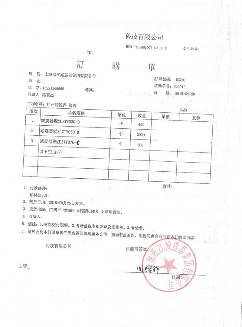 廣州超視界彈簧減振器合同項(xiàng)目
