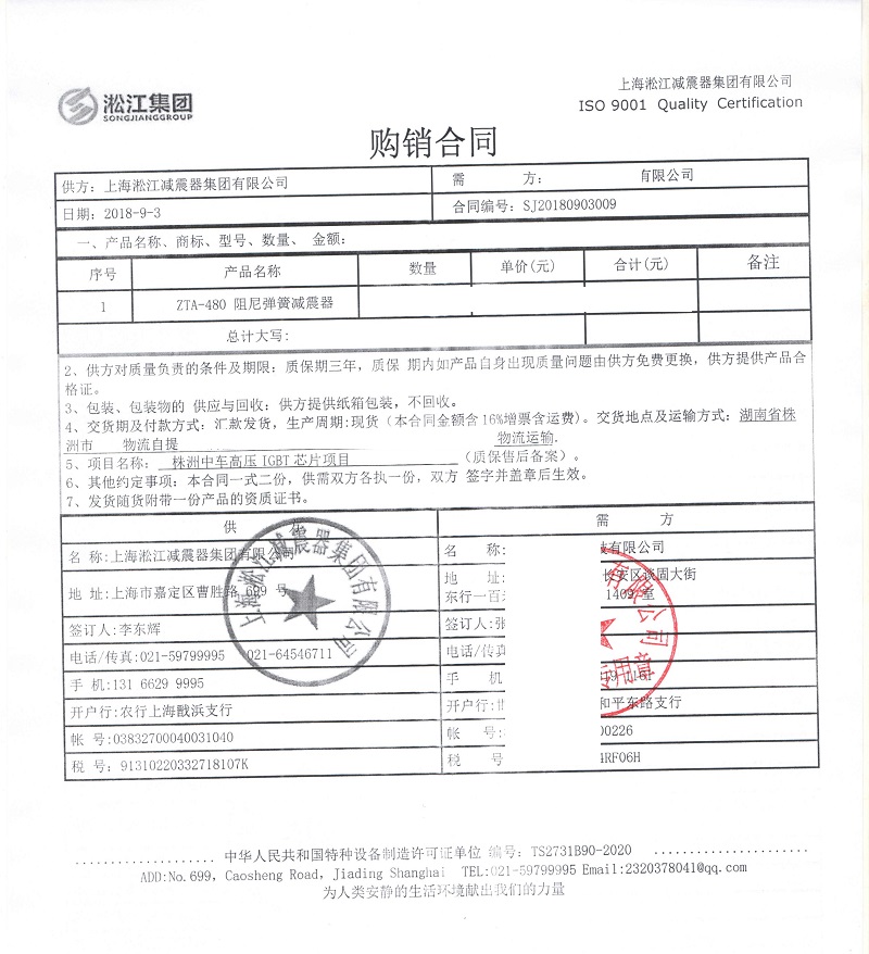 上海淞江減震器集團有限公司為您介紹:株洲中車高壓IGBT芯片阻尼彈簧減震器項目案例信息,淞江集團銷售在2018年9月3日簽下該項目,為株洲中車高壓IGBT芯片項目提供阻尼彈簧減震器產(chǎn)品,以下是詳細介紹。